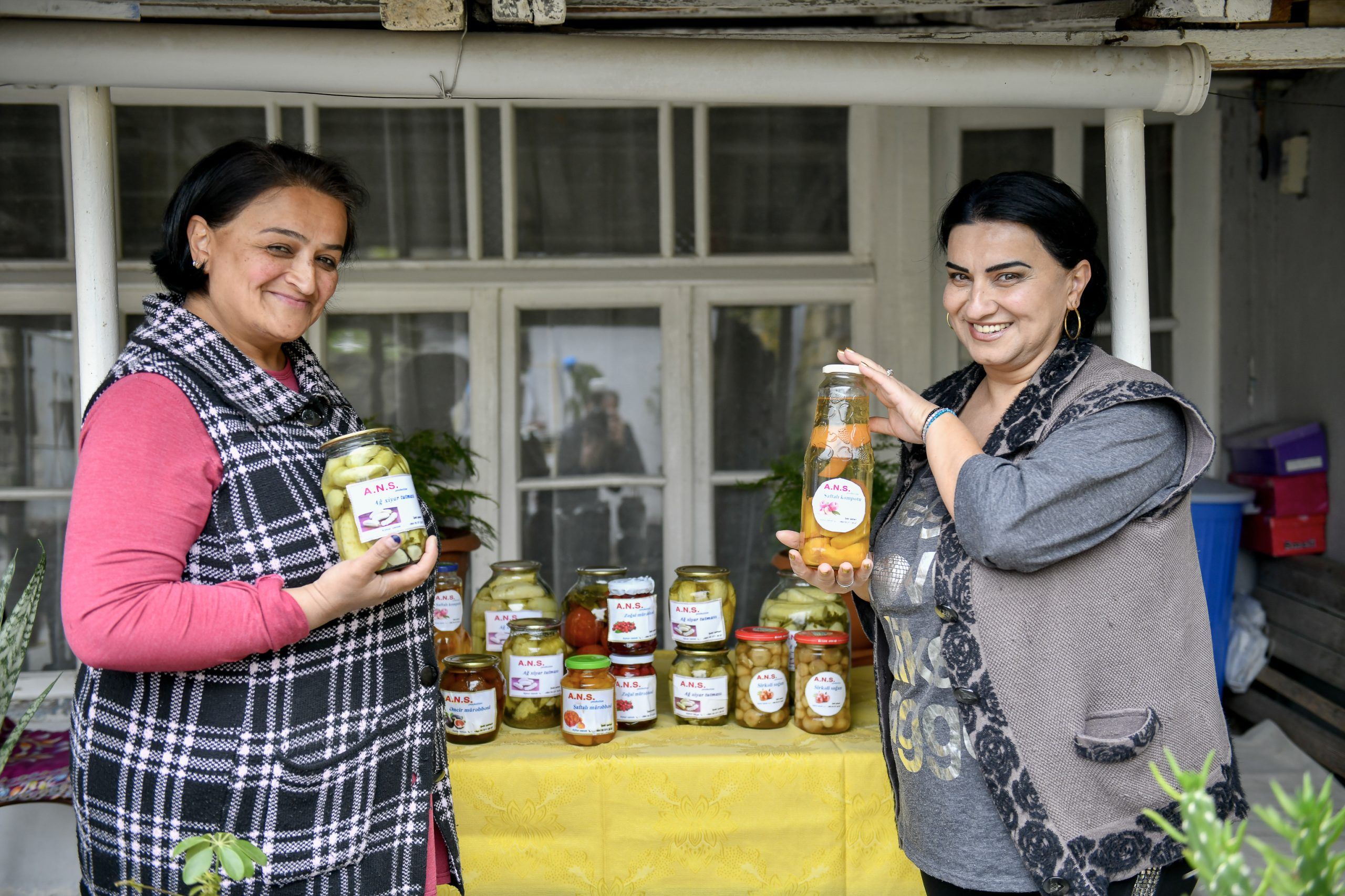 Aynur Karimli lives in Sheki with her two sisters, Nigar and Salima. As an expert cook, Aynur had  always wanted to start a pickle business. So when an EU funded project approached the sisters during the post COVID-19 period, offering support , Aynur’s dream business began to take shape. The project supported the sisters from scratch. It provided them with vegetables, jars  and other necessary goods tp start preparing packaged products. So the sisters started experimenting with many recipes  and in one season, they produced a variety of pickles and jams including cucumber pickles, onion vinegar, compote, fig jam, crushed tomatoes, and salted cranberries under the label “ANS” (Aynur, Nigar, Salima). In total they made300 bottles. Although there were problems with sales at first, these difficulties were overcome with the project’s help. Negotiations took place with restaurants and that boosted the sales. Since the sisters live near the main road, they were able to market and sell their products more easily. Aynur said: “You get help once and if you have desire to learn, you will go forward.”