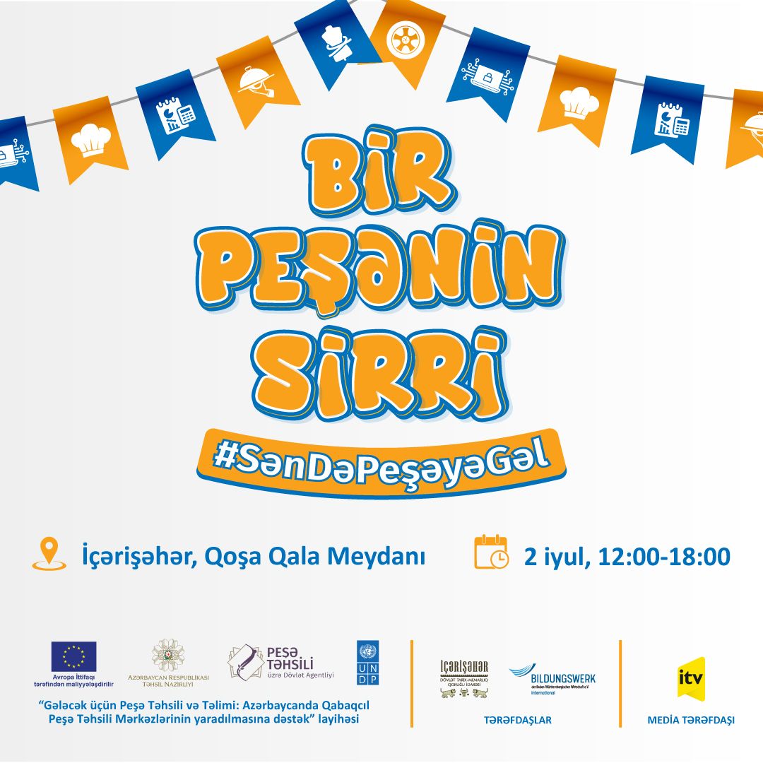 2 iyul 2022-ci il tarixində Avropa İttifaqı (Aİ), BMT-nin İnkişaf Proqramı və Peşə Təhsili üzrə Dövlət Agentliyinin birgə əməkdaşlığı ilə İçərişəhər Qoşa Qala meydanında “Bir Peşənin Sirri” adlı festival təşkil olunacaq.