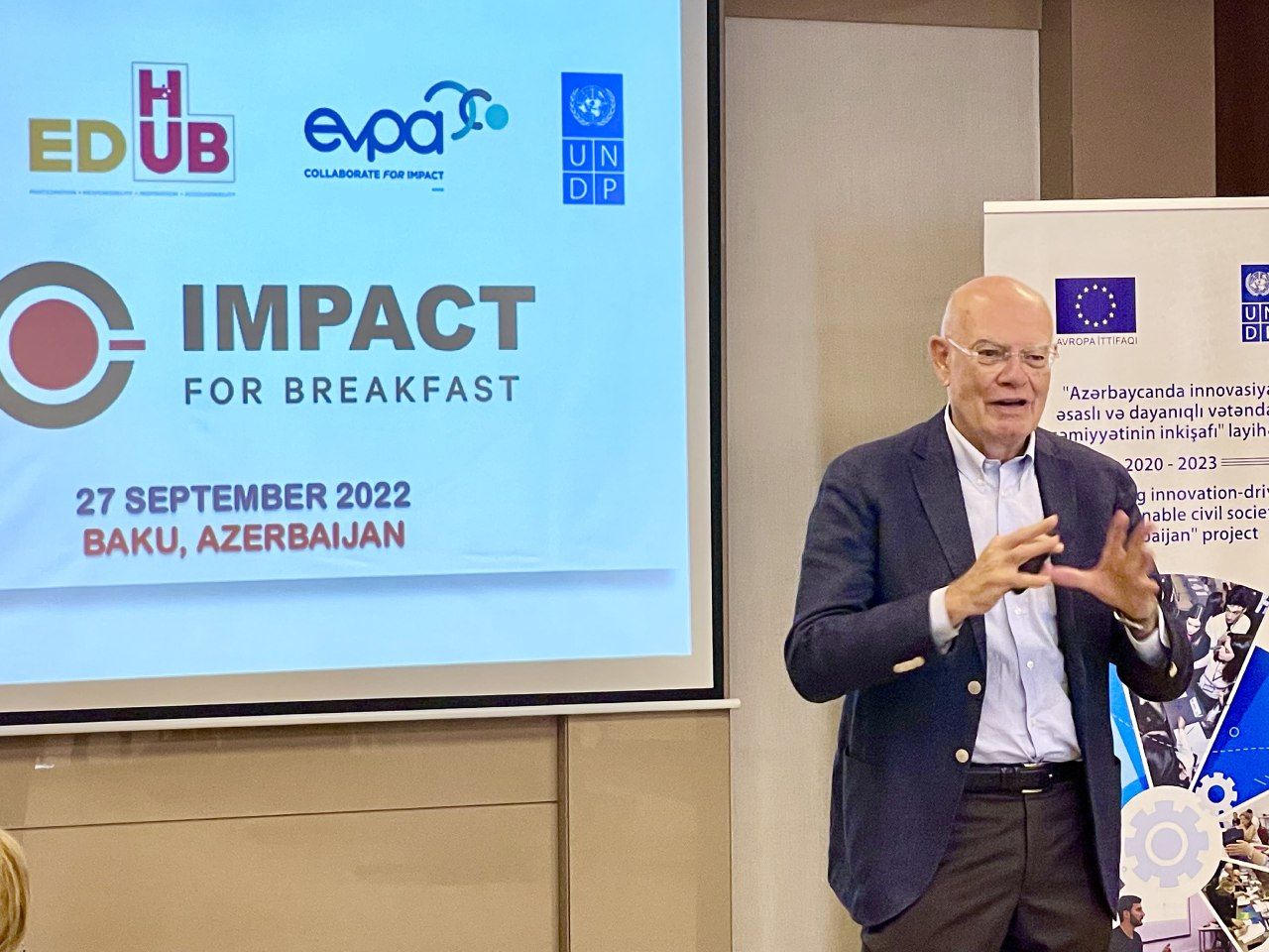 Sentyabrın 27-də Education HUB və Avropa Vençur Filantropik Assosiasiyası tərəfindən BMT-nin İnkişaf Proqramı ilə sıx əməkdaşlığı ilə “Dəyər üçün səhər yeməyi” baş tutub. Tədbir Avropa İttifaqı tərəfindən maliyyələşdirilən “Dəyər üçün əməkdaşlıq” və “Azərbaycanda innovasiya-əsaslı və dayanıqlı vətəndaş cəmiyyətinin inkişafı” layihələri çərçivəsində təşkil olunub.