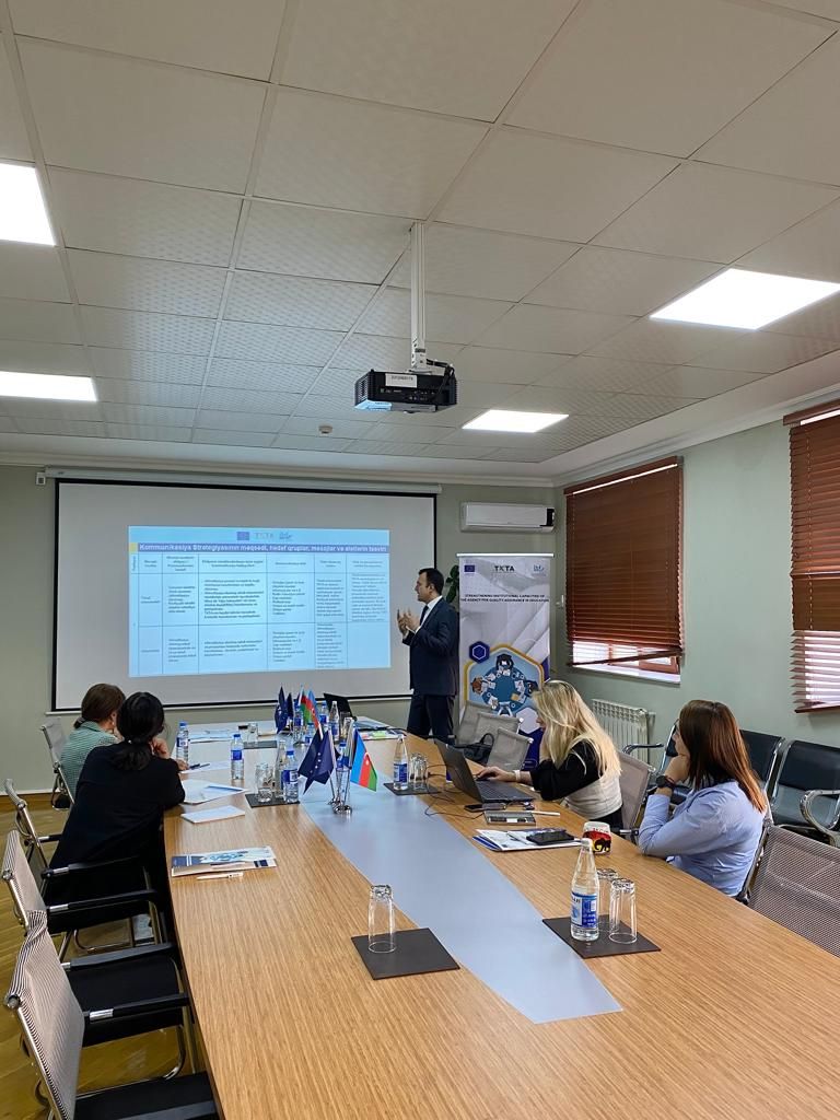 2 noyabr 2023-cü il tarixində Təhsildə Keyfiyyət Təminatı Agentliyinin rəhbərliyi və əməkdaşları üçün Avropa İttifaqı tərəfindən maliyyələşdirilən “Azərbaycanda Təhsildə Keyfiyyət Təminatı Agentliyinin institusional potensialının gücləndirilməsi” layihəsi çərçivəsində hazırlanmış Kommunikasiya Strategiyasının təqdimatı keçirilib.