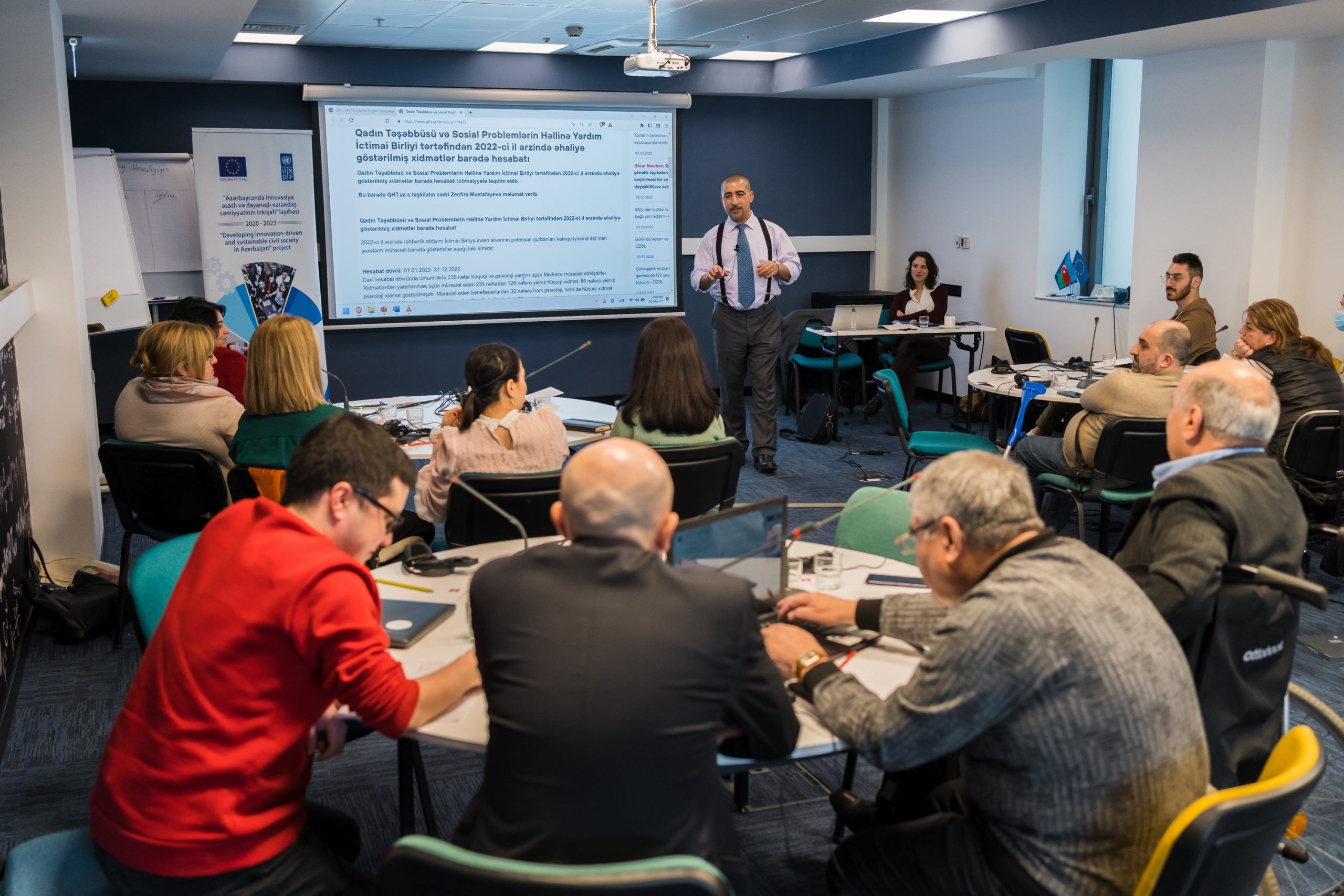 The training programme is organised by the ‘Developing innovation-driven and sustainable civil society in Azerbaijan’ project, funded by the EU and implemented by UNDP. The project aims to support increase civil society organisations’ capacities to engage in policy-making processes, help local development, and promote social entrepreneurship in the country.