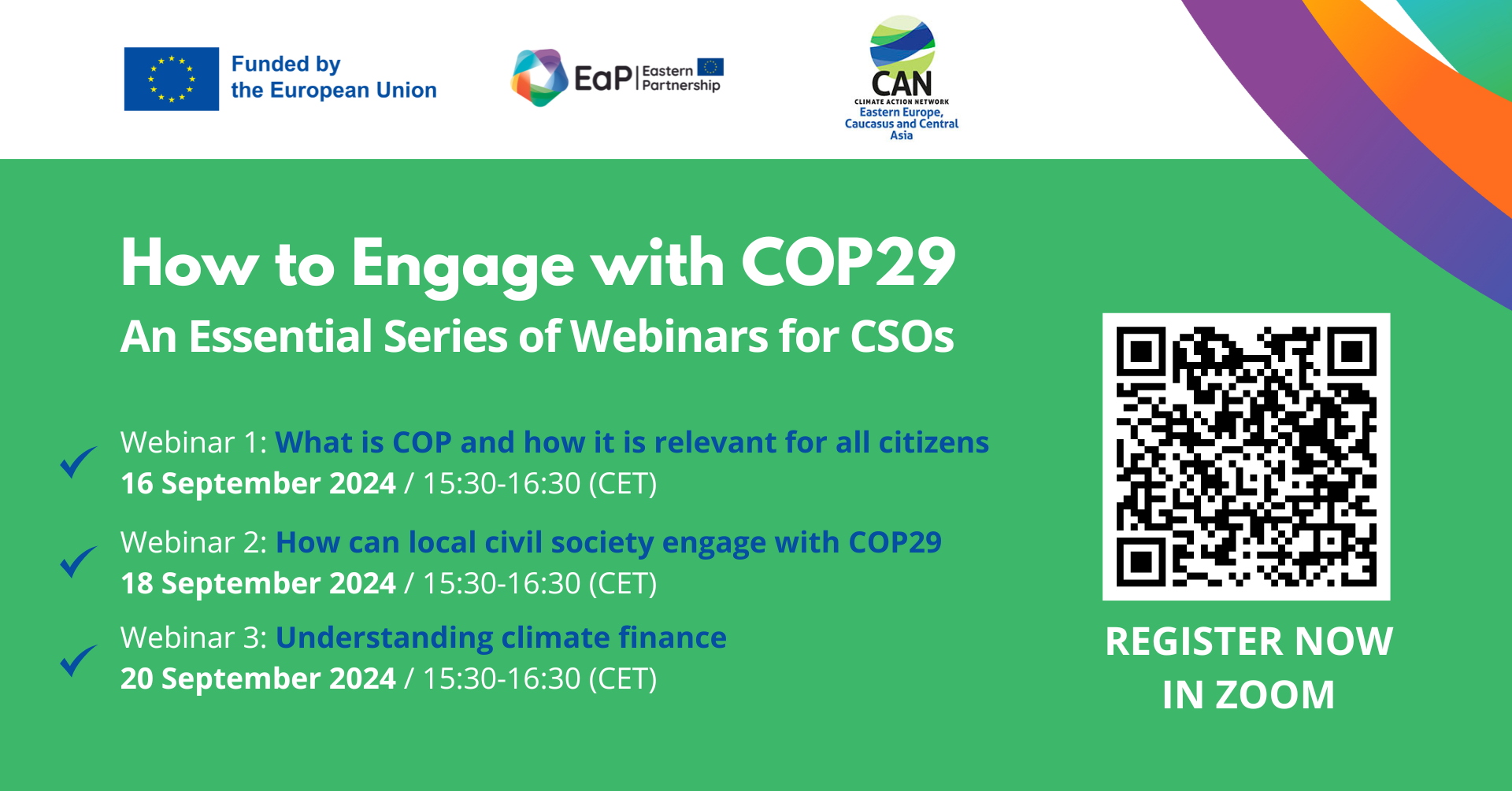 Webinar 1: What is COP and how it is relevant for all citizens / 16 September 2024, 17:30-18:30 (Baku time) / 15:30-16:30 (CET)